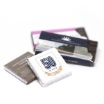 De standaard chocolaatjes kunnen tevens worden gepersonaliseerd met een klanteigen wikkel. Vraag naar de mogelijkheden en een passende offerte.