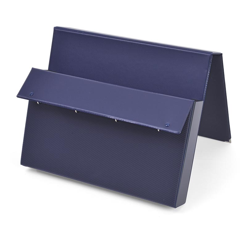 Buitenzijde in Maya Genni blauw met sierhoekjes. Binnenzijde in uniefolie.